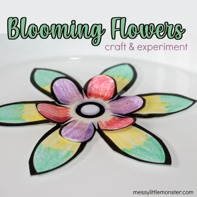Colour the flower template and cut it out. Fold in the petals and add it to water to watch the flower bloom! Full details here - blooming flower craft