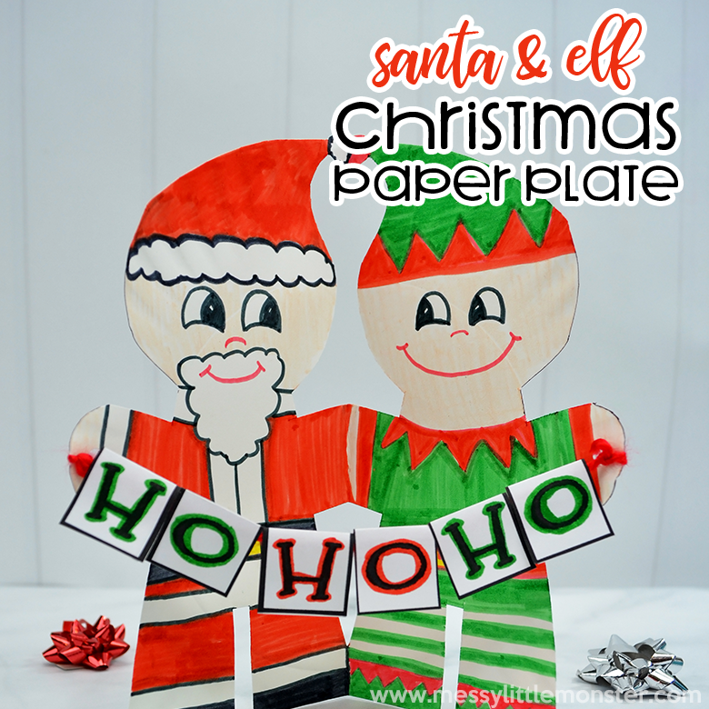 Use the template to make a paper plate santa and elf craft. Full instructions -