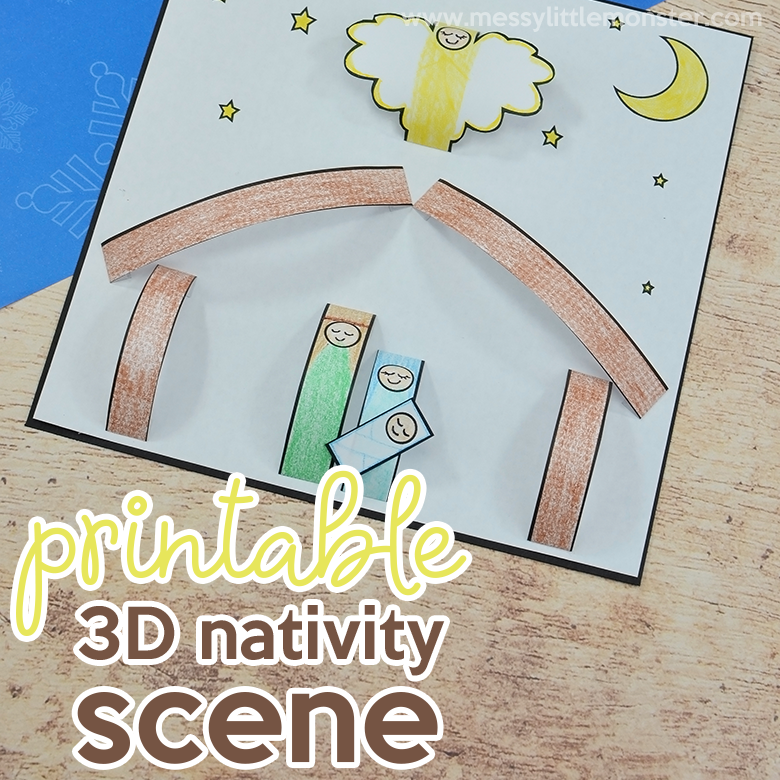 Use this printable nativity scene template to build your own paper nativity scene. Full instructions - https://www.messylittlemonster.com/2018/12/printable-nativity-scene-nativity-craft.html