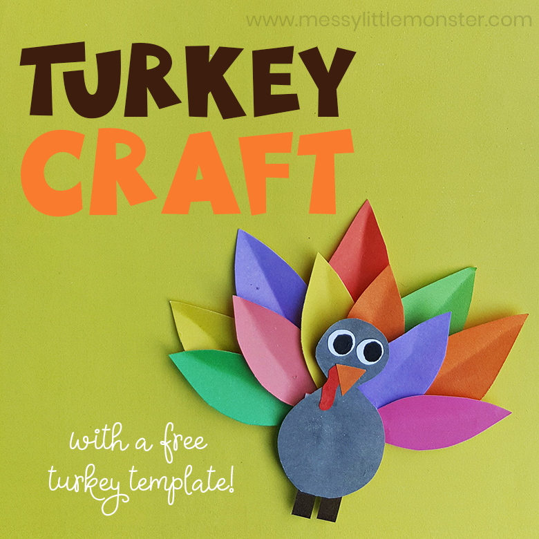 Print out the template and follow our instructions to maker a colourful paper turkey! Full details here - https://www.messylittlemonster.com/2018/10/paper-turkey-craft-turkey-template.html