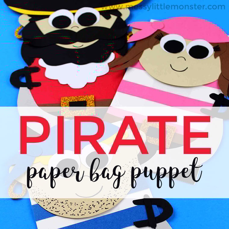 Print out the pirate template and use it to make a paper bag pirate puppet. Full instructions for making a pirate puppet can be found here - https://www.messylittlemonster.com/2018/06/pirate-paper-bag-puppet-craft.html