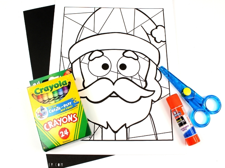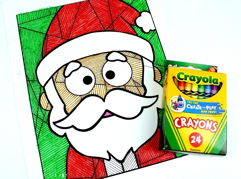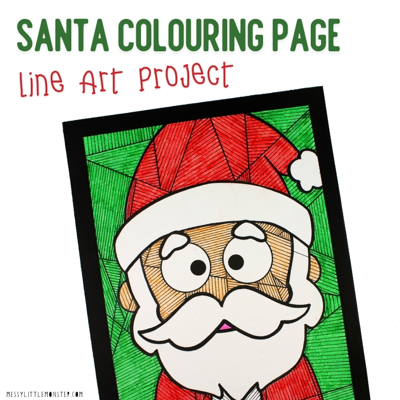 Download and print out the Santa colouring page, add lines using a black marker and then colour it with crayons to create your own Santa image. Mrs Claus and Santa Claus are included.