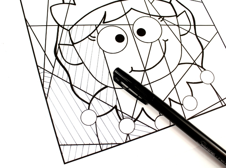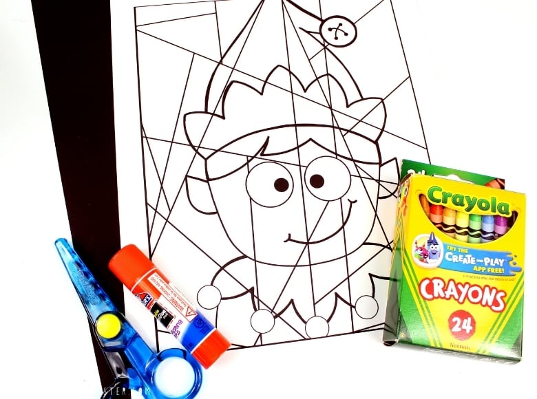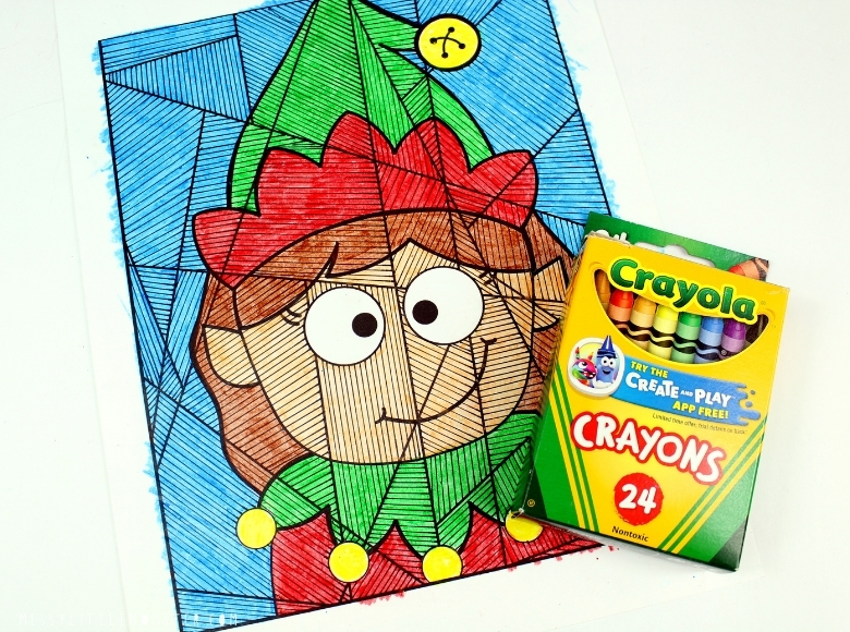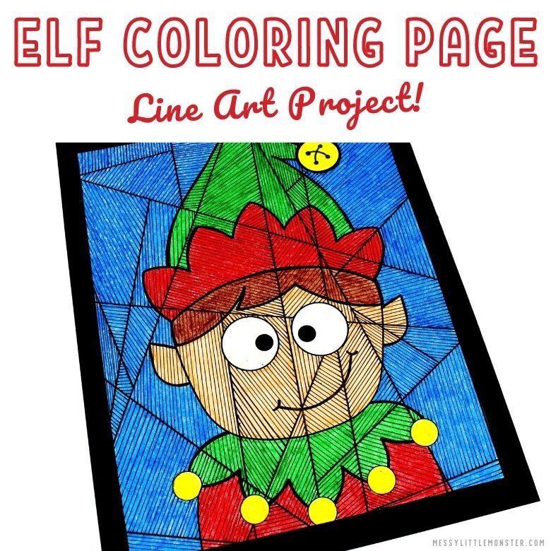 Download and print out the elf colouring page, add lines using a black marker and then colour it with crayons to create your own elf line art. A boy elf and a girl elf are included.