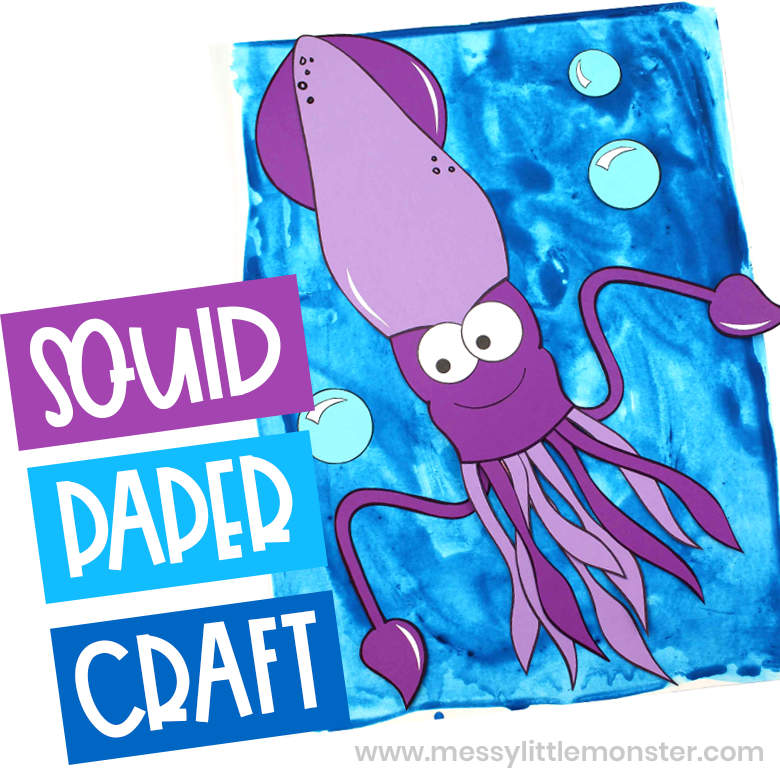 Download and print out the printable squid template and use it to make your own squid paper craft. Full directions here - https://www.messylittlemonster.com/2024/06/paper-squid-craft.html