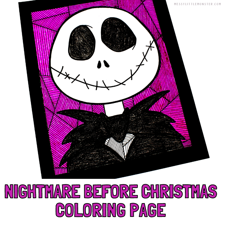 Download and print out the Night Before Christmas coloring page, add lines using a black marker, and then color it with crayons to create your own Jack Skellington.