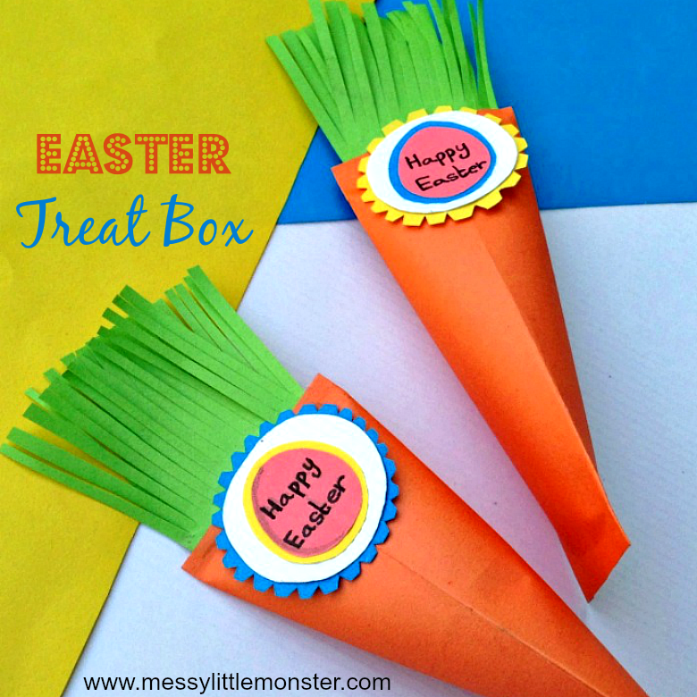 Make carrot shaped treat boxes for the kids this Easter using this treat box template. Download the template and follow the instructions here - http://www.messylittlemonster.com/2018/02/easter-carrot-treat-box-kids-paper-craft.html