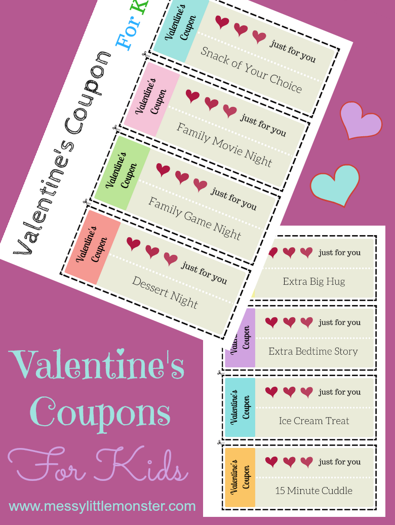 Valentine's Day Coupons for kids. Download and print out the 8 coupons to make a family friendly coupon book for your child. What a fun Valentine's Day idea!